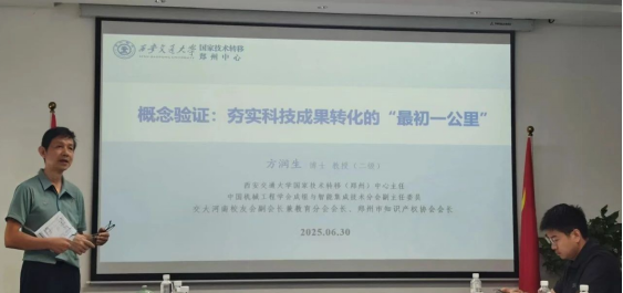 西交大郑州技转中心主任、西交大河南校友会副会长兼教育分会会长、郑州市知识产权协会会长方润生主题分享