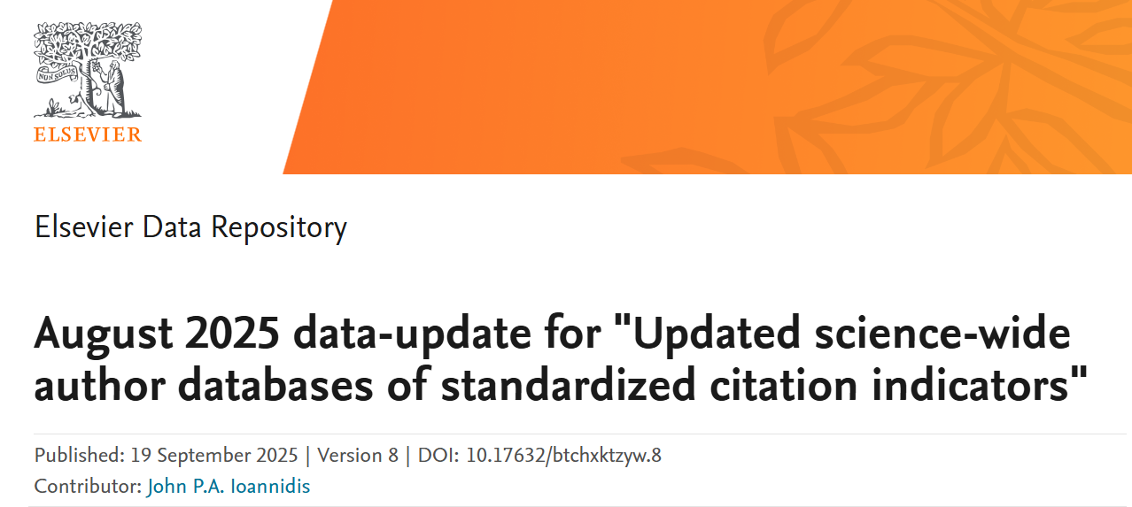 近日,美国斯坦福大学和爱思唯尔(Elsevier)出版商发布了第八版全球前2%顶尖科学家榜单(World's Top 2% Scientists),榜单分为“终身科学影响力榜单”和“年度科学影响力榜单”。