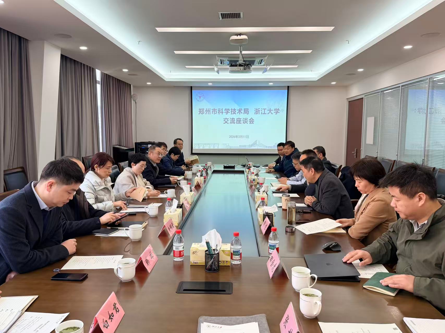 郑州市科学技术局副局长张朝峰、王旸,浙江大学国内合作办公室副主任许亚洲,中原研究院副院长王如杰、田金虎和张婷以及其他相关负责人参会。